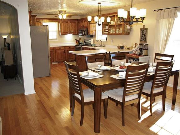 Beautiful home with wrap around porch sitting on 4 acres in Manchester. Features 3BR 2BA, Living Room, Kitchen with Eat-in Bar, Dining Room, huge Den with gas fireplace, Master Bedroom with walk-in closet and full Bath. Master Bath with double vanities, whirlpool tub, tile, new hardwood, laminate and carpet flooring. Newly painted, HW heater approx. 1 year old, new kitchen appliances and lights, over sized 2 car detached garage with gas stove and shop area with gas heater and plumbed for sink.