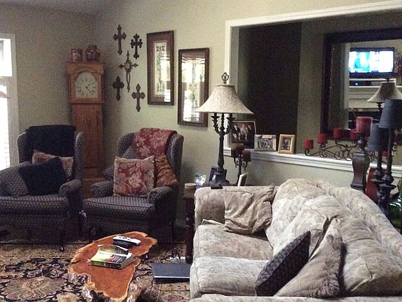 Lovely home with walk out basement. Sits on 4 wooded acres with creek at back of property. Main floor has large open kitchen with breakfast area, dining room and living room. Master bedroom and bath, 2 bedrooms, bath and laundry. Basement has large living area, bar, bedroom and bath. Walks out onto a large patio and fire pit. Main floor also has upper deck off dining room. 2 car garage attached to house and also a detached garage/workshop and office. All new stainless appliances, new A/C 2015
