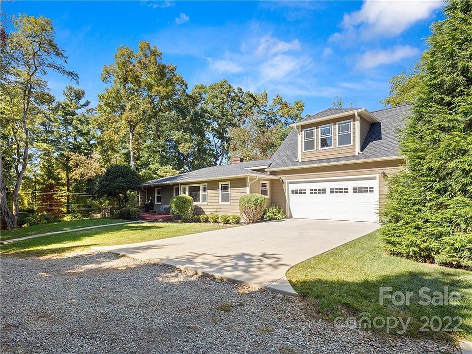 Incredible South Asheville location with privacy and a convenient floor plan. Minutes to shopping, groceries, schools, restaurants, highways and the Blue Ridge Parkway! Owners have made tons of improvements including addition of a 2-car garage with a FROG and concrete driveway, new gutters with gutter guards, new fenced-in yard, new driveway gravel, removal of trees and overgrowth and a fresh coat of exterior paint. This home is ready to move in! Easy access, relatively flat lot with one-step up into beautiful hardwood floors with laundry, kitchen, bathrooms and bedrooms all on the main level. Large walk-in closet in primary bedroom and plenty of storage in the unfinished basement or the shed out back! The FROG is finished with luxury vinyl plank and makes the perfect space for a bonus room or play room.