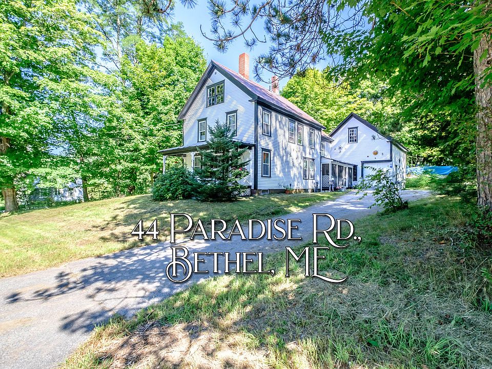 Set on the scenic Paradise Road in Bethel, this early 1900s farmhouse beautifully combines historic charm with modern possibilities. Featuring an attached barn, the property is currently a single-family home but offers the flexibility to be converted into a two-unit space, with the potential to add a kitchenette upstairs. The expansive land behind the house opens up opportunities for future development or parcel sales for additional single-family homes, subject to town permitting—though you'll appreciate the absence of a governing HOA. The location is ideal, offering the convenience of walking everywhere and close proximity to the Bethel Village Trails, perfect for Nordic skiing, trail running, or mountain biking. Whether you're looking for a full-time residence or a smart investment, this property has endless potential.