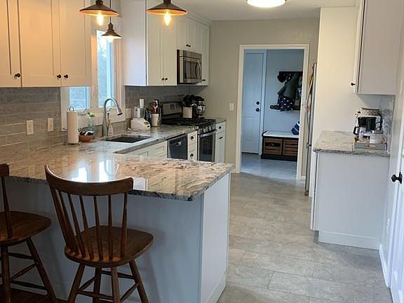 Welcome to Mattapoisett!!! This lovely 3 bedroom dormered cape features a brand new kitchen with granite counters, stainless appliances, self close drawers and pendant lights. The large, bright living room with new wood floors and fireplace leads to the open concept dining area and bay windows. Don't forget the first floor master bedroom with it's own modern bathroom, two huge bedrooms and full bath on the second floor. The exterior features vinyl siding (cedar impression) large deck and stone walls.