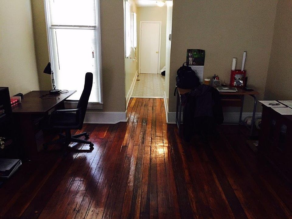 Rare 1 bedroom apartment just a few minutes walking distance to Inner Harbor, Camden Yards and UMB Graduate Schools. This is not an efficiency: separate large living room with newly finished hardwood floors, separate eat in kitchen and separate bedroom and bathroom. This block is a very quiet dead end street with lots of available parking. Washer and dryer in unit. Tenant pays utilities.