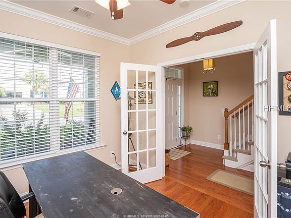 Adorable move in ready home features hardwood floors, office with glass french doors, kitchen with stainless appliances, large dining area opens to huge great room. Powder room downstairs for your guests and a screened porch off back with a patio extension. Huge yard overlooks the neighborhood pond with privacy fence on all sides but open fencing across the back to preserve the views. Upstairs has 2 large guest rooms with guest bath and spacious closets. Master suite is open, light and bright with lots of space. A community trail goes around the back of the pond; perfect for nature walks with the family and pets.