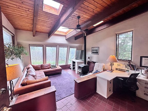 This magical 2BD/1BA home located in the trees and near to the Sangre de Cristo mountains of Taos will be available May 1. Lots of outdoor living amenities and indoors, this home is warm and welcoming with its cozy kitchen and bathroom, upstairs treehouse-like bedroom, and a walkthrough bedroom/office/living room layout. Bonus infrared sauna in the downstairs bedroom for those cold winter nights! Outside, this property has a large wrap around deck, play structure (should you happen to have kids), medicinal herb garden, additional garden space, and is on a acre of wooded land. Hiking and waterfalls are just moments away from your front door. Large shed available for tenant use. Seeking 1 year lease; first, last and security deposit, all equivalent to one month's rent, due at move-in (no exceptions); Water/Septic included; Kit Carson Electric, Propane, Kit Carson internet not included; Pets will be considered with pet fee. This home is represented by Digs Property Management. We are available to respond to inquiries and conduct showings by appointment M-F, 9-4.