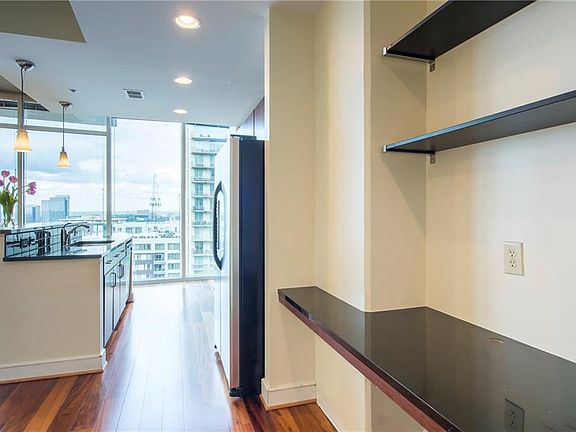 Welcome to your high rise haven in the heart of Midtown! Inviting and extremely well-maintained unit with great views. Floor to ceiling windows in the open concept living space. Gleaming hardwoods, granite, stainless steel, built-in work desk, and walk-in closet! Take the elevator down to Publix, head to MARTA, catch the Tech Trolley, and fly a bird to Piedmont Park and the Beltline. Resort style amenities: pool, fitness center, clubhouse and 24 hour concierge. Includes one assigned covered parking space.