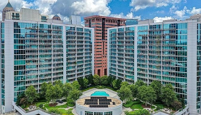 Beautiful 1 BR/1Bth located on the 16th floor (facing north) with floor-to-ceiling windows, 10 ft ceilings throughout the living with a big balcony. Unit has spacious walk-in closets, kitchen with granite countertops and stainless appliances, washer /dryer, built-in computer station, tiles and garden tub in bathroom, linen area. 856 square footage. Reserved parking in a covered garage. Building amenities include: 24-hour concierge, fitness center with weights and cardio machines, business center, beautiful Club Room with plasma TVs & kitchen (can be reserved for events and parties), swimming pool, one-acre outdoor park on the 6th floor which is unique. The Plaza Midtown is one of Midtown Atlanta's most popular condo buildings. It features street-level retail and restaurants. One of the aspects that differentiates this building from the rest, is the presence of a Publix Urban Market grocery store with pharmacy, gourmet take-out, an extensive wine selection, and fresh sushi. Residents even have a special elevator to take the directly to the Publix! Within walking distance from many of Atlanta's restaurants, schools, museums, downtown, Piedmont Park, Aquarium, and night life; half-block away from MARTA and minutes away from major expressways. Move-in date available on April 30th 2025 . Landlord pays HOA fees. Tentant pays utilities. Covered parking included.