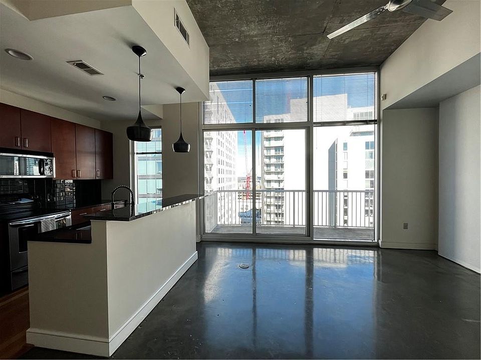 Penthouse condo in the heart of Midtown. 12 foot ceilings and floor to ceiling windows flood this modern home with natural light. Polished concrete floors, tiled bath, stainless appliances, and stone countertops. Plaza Midtown sits on top of Publix so grocery shopping is an elevator ride away as are shops, restaurants, and entertainment. 24 hour concierge/security, gated covered parking, recently renovated amenities include saltwater pool, clubhouse, fitness center and secure pet relief area. Owner/Agent