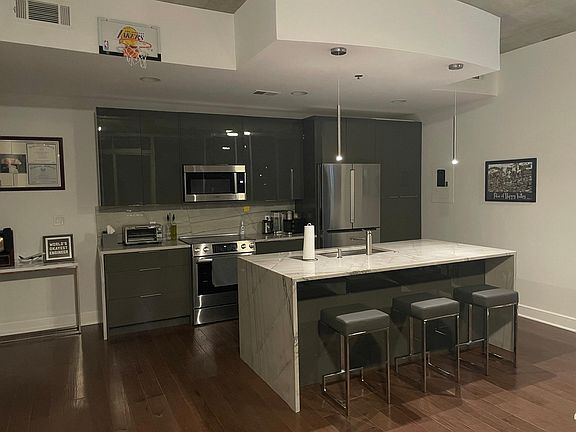 Completely renovated in 2021, including new appliances 15th floor with balcony Two garage parking spots included Available to rent with sectional sofa, high-top table, and barstools Internet and water included. Tenant responsible for electricity.