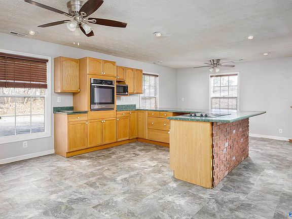 Situated on 1.20+/- acres in Priceville School District, this unique and custom 3 bedroom and 3 bath home offers peaceful country living with the privacy and seclusion of no through traffic! Spacious dream eat-in kitchen features a large walk-in pantry, lots of cabinet storage, extensive countertop space, exposed brick for additional aesthetic appeal, and beautiful natural lighting. Two family rooms are offered giving way for additional usable space that is suitable to your needs. Master bedroom and bathroom are ground level, with an additional 3/4 bath downstairs for guest access or can be used as a mud room in the home. Two large bedrooms with great closet space and a full bath upstairs.