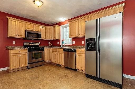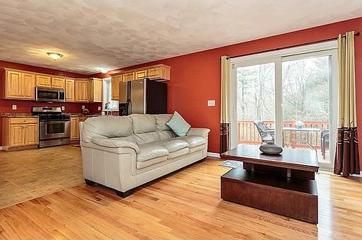 Cul-de-sac setting, walkout lower level and pride of ownership add to the appeal of this young colonial. You will love the light, bright and airy inside with maple and stainless kitchen and formal dining room with hardwood and chair rail. The front to back living room, also with gleaming hardwood floors, boasts a gas fireplace and slider to wood deck overlooking private backyard - a perfect place to spend summer evenings. The second floor offers 4 bedrooms, including a master with walk-in closet and bath. The walkup attic offer plenty of room for easy storage. The three finished rooms in the lower level offer great places to hang out, study, and play or exercise. Plus it has access to the brick paver patio and backyard. All this in a perfect setting near hiking trails in the Lowell-Dracut-Tyngsboro State Forest.