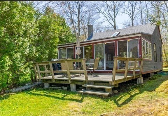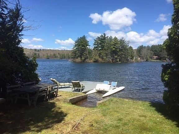 Jump in the car--let's head to the lake! This cute-as-a-button WATERFRONT studio cottage at Pine Island Lake will take your summers to a whole new level of fun and provide the backdrop for lifelong memories with family and friends. Located in quiet, rural Westhampton, Pine Island Lake is a private lake with no public access. There are no gas motors allowed, making for a quiet and peaceful getaway where you can unwind and relax. This three season cottage is a wide open studio, with a full kitchen, dining area, living room area, half bath and loft that is used for sleeping. A few sliders frame the view out over the lake and the island. Enjoy swimming or kayaking during the day and spend your evenings on the deck watching the sunset. Being sold ' as is' and with most of the furnishings. Showings BY APPOINTMENT begin Friday August 7th.