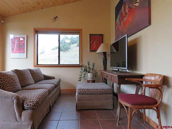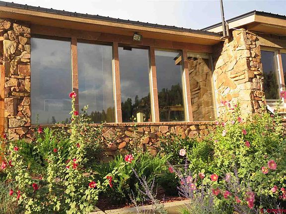 Adorable stone faced house with Mountain views. Stonework was done by a former resident and Master Mason as a labor of love. It is located across the street from the Blanco River and just a short walk to National Forrest. There is also a seasonal creek that runs just one lot east. Remodeled in 2004, the home has Pergo flooring in the Family room and bedrooms with tile in the front entry, dining, kitchen and bathroom. Wonderful passive solar windows in the large front room, also has forced air heating and a wood stove. The well has good water with NO sulfur smell! Brand new septic tank was just installed. The kitchen has concrete counters and a rock faced island with counter seating space. Beautiful aspen ceiling in the front room with large beam. There are several amenities outside that not every house has. The stonework being one, the fabulous back yard block retaining wall with a built in fireplace is a rare treat for your outdoor cool night entertaining or private enjoyment. This area is also fenced in for your pets safety. A hot tub in the back yard is another nice pampering amenity. The front yard has a 383 square foot heated Growing Dome ready for any crop you desire. It comes with its own producing Fig Tree. The 2 car Garage has custom made aspen cabinets and a large storage attic with trusses designed open at the center to be able to access the full length the building. The basement space is an additional bonus room of 296 square feet that could be used for a variety of functions. The crawl space under the house has enough height to provide even more storage space. This is a rare find you must see!!