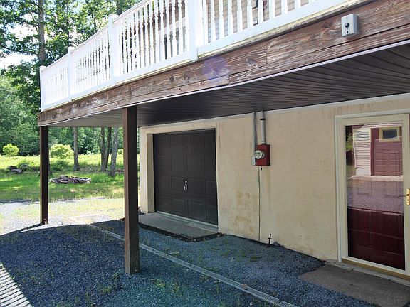 This 3 bedroom, 1 1/5 bath Raised Chalet is situated on a beautiful private piece of land in Hickory Run Forest. Features a family room on the first floor with a propane fireplace and access to the attached garage. Upstairs you will find a bright, open concept newer kitchen & dining room with a wood stove and high ceilings, nice sized bedrooms and a full bathroom. Third floor bedroom and small loft complete the interior of this home. Outside you will find a maintenance free large deck perfect for entertaining, or just relaxing and enjoying nature. Two car detached and on garage is perfect for storing your atv, golf cart, boat, vehicles and all your toys. Close to the EZ pass turnpike ramp and all the year round activities in the Poconos, Schedule your showing today! Dues $150 PER YEAR