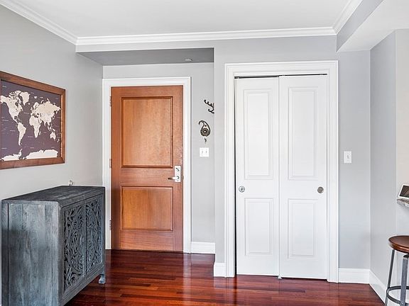 DEEDED PARKING + JULIETT BALCONY. This beautiful one bedroom condominium is in a prime North End location. Lots of natural light with large windows facing South and East. The Greenway, fantastic Italian restaurants and coffee shops are just steps away. Financial district and MGH are within walking distance. The building has a private building courtyard, on-site property management concierge service and direct elevator access to the underground garage. Cozy gas fireplace in the living area. Cherry cabinets, stainless steel appliances, granite counter tops and gas stove. Central HVAC, hardwood floors, built in cabinets, and in unit laundry. All closets built out by California Closets. This pet friendly building has everything you need!