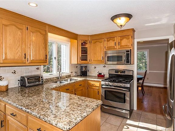 Welcome home to this 5 bedroom 2.5 bath home on a cul-de-sac street. This sun drenched home has a lot to boast about. A huge sunroom with newly refinished floors creates a "staycation" feeling. The family room has built ins and a wood burning fireplace. The dining room has chair rail and crown molding. The formal living room has tons of windows, hardwood floors and a wood burning fireplace. The kitchen with granite and stainless appliances also has a gas stove. The 5 bedrooms on the upper level are all generously sized. Two of the bedrooms have carpet and ceiling fans. The other three bedrooms have hardwood floors and ceiling fans. The master bedroom has a walk in closet and a full bath with a new vanity. The hall bath is updated and includes a tub. The recently finished basement has built in cabinets and a sink. There are also two very large closets for tons of additional storage. The second entryway into the house acts as a mudroom and has a huge closet that contains storage cubbies. The backyard is lightly wooded and perfect for relaxing. It also contains a large storage shed for all of your lawn maintenance tools. The driveway was repaved in October 2018.