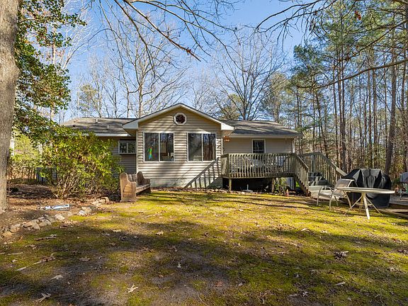 44 Rabbit Bottom Circle, located in the sought-after Timber Creek subdivision, offers deeded boat slip (#23), a community swimming pool, & private boat ramp. Step into the open living area that flows seamlessly into the dining & kitchen space, then unwind in the sunroom overlooking the serene, nature-filled backyard. The primary suite is situated on the right side of the home, while two guest bedrooms & bath are on the left. Recent upgrades include new carpet in the bedrooms, fresh paint throughout (walls, doors, ceilings, & kitchen cabinets), an expanded gravel driveway to accommodate multiple vehicles or an RV, a new washer and dryer, & shed with 50-amp electrical service. Enjoy enhanced privacy with no neighboring homes to the right or rear. Homes with deeded boat slips in Timber Creek are rare so don't miss this opportunity! Contact me or my team today to schedule your private tour!