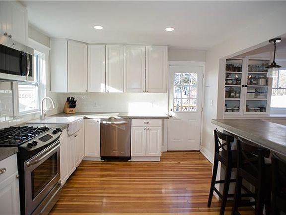 Walking into this home, you'll want to sit and stay a while. With a spacious, open, and bright downstairs that boasts gleaming hardwoods, new vinyl windows, and original built ins, you'll be sure to take your time and enjoy the view. Speaking of view, this property overlooks Learned Pond, which is seen through many windows and from its beautiful wide front porch. A new bright white kitchen with stainless appliances,subway tile, solid counters, and recessed lighting make it perfect for entertaining. The 3 spacious and bright bedrooms upstairs, along with the 2 1/2 new and beautiful baths.