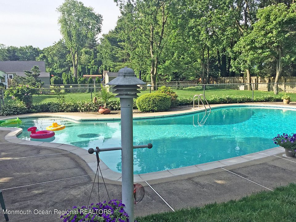Welcome to this fabulous home located on a quiet tree-lined street in the very sought after Whispering Pines Neighborhood in Lincroft. This home sits on over a half an acre with an in-ground gunite pool and beautiful lush green gardens, perfect for outdoor relaxation and activities. The family room is cozy with a gas fireplace. The living room and dining room are great for entertaining. There is an all season room with plenty of sunlight and vaulted ceiling right off the kitchen. The primary bedroom has an ensuite bath and walk-in closet. There are three other generous sized bedrooms. The partially finished basement with built-in closets provides additional living and storage space. The schools are topnotch! Enjoy the nearby county parks and easy access to the parkway and NJTransit
