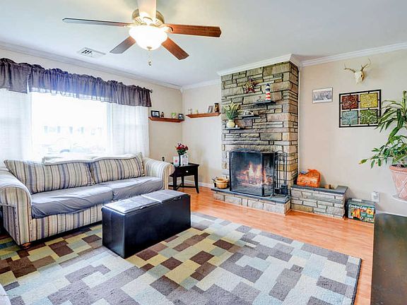 Immaculately kept 3 BR 1 BTH Ranch in waterfront community of Baywood. Well maintained lawn and landscape surround this Gem. Relaxing open living room with wood floors and fireplace. Spacious updated kitchen with full SS appliance package, wood fired grill, oak cabinets and views of back yard. Large Dining room has plenty of windows that fill the room with sunlight and low maintenance laminate flooring. Great Master Bedroom with ample closet space. 2nd bedroom off hallway. 3rd bedroom currently used as laundry room/ guest room. W/D hook up also in closet in kitchen for stackable W/D. HotWater Heater in attic. One Car Gar with storage space. Expansive rear deck and patio area. Gravel covered yard for low maintenance.