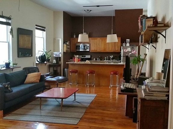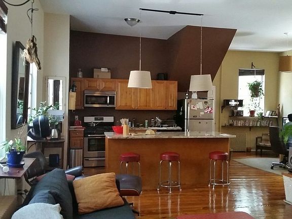 This massive 1400 square feet, three bed, now converted to four bed Greenpoint loft is back on the market for the first time in 4 years! The apartment is perfect for working from home. There is a living room and separate dining room. The photos do not even begin to convey how large this apartment is. It features hardwood floors, and real granite stone counters on the kitchen island. There are windows on all three sides. There are currently 4 bedrooms, but it can be converted back to a three bedroom if you'd like. There is also a HUGE basement that can come with the apartment if you'd like for an extra cost. And the location is incredible- right on Richardson (continuation of N 11th St) and Lorimer. Right next to Beco (delicious Brazilian!) McCarren Park is a literal hop, skip, and a jump away. Both the L/G at Lorimer/ Metropolitan and the Bedford L are close by. There is also a little outdoor patio! Heat and hot water included. Dogs are welcome! An amazing deal for the square footage!! Contact Flora to set up a showing today! Amortized Rate