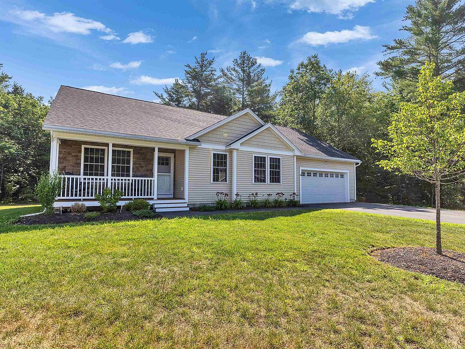 Ideally situated on the quiet cul-de-sac abutting conservation land, this quality-built home offers peaceful living with a scenic trail along the Merrimack River right in your backyard! Enjoy the ease of single family living and a spacious primary suite featuring a walk in closet and a luxurious tiled oversized shower. The heart of the home includes cozy gas fireplace in the living room and a bright 4 season family room overlooking the private, wooded backyard. Additional features include: Large basement with staircase from inside and from the garage, city water and sewer, natural gas, beautiful open floor plan. Don't miss this rare opportunity to own in Oxbow Bluff!