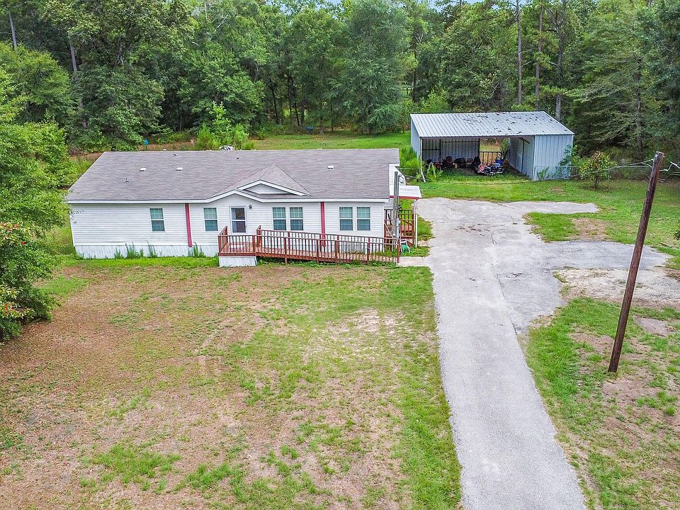 Welcome to 3.03 acres of unrestricted property with 4 bedroom/2 bathroom home ready for your personal touches. Tucked back from the street with extended driveway and carport/storage. Spacious living room and kitchen with ample cabinet and counter space. Entertain on the large covered back porch surrounded in mature trees. Secluded and fully fenced, this property is ready for new owners to make it their own.