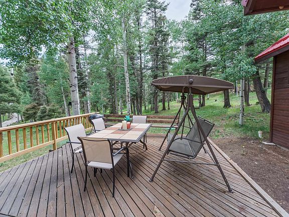 Sink in to the solitude in this warm & inviting 3 bedroom, 2 bathroom home that shares a cul de sac with only two other homes! The park like .73 acre lot boasts huge aspens which proudly show off their hues of yellow and gold late September and early October. Well maintained with many upgrades, this home offers 2 bedrooms and a bathroom on the main level and a primary bedroom with ensuite bathroom on the second level. The light and bright living area is enhanced with beautiful vaulted tongue and groove ceilings, skylights and views of the mature forest toward the front of the home. In the kitchen you'll find a brand new range & almost new fridge & dishwasher for worry free entertaining! All items currently in the home/garage convey. For the outdoor enthusiasts, 44 Rio Grande Terrace is the perfect basecamp! Monte Verde Lake is minutes away which provides great fishing, paddle boarding, & non-motorized boating opportunities. 5 minutes away you can tee off at 8,600' on the par 72, 6,653-yard, 18-hole golf course surrounded by the majestic southern Rocky Mountains! Complete the day after a round of golf by watching the sunset view from the deck of Angel Fire Country Club. Angel Fire Ski Area and Downhill Mountain Bike Park, which is one of the top rated bike parks in the southwest, is a mere 7 minutes away. Or, never leave home and just get lost in the quiet on the spacious deck and watch the deer and the animals play.