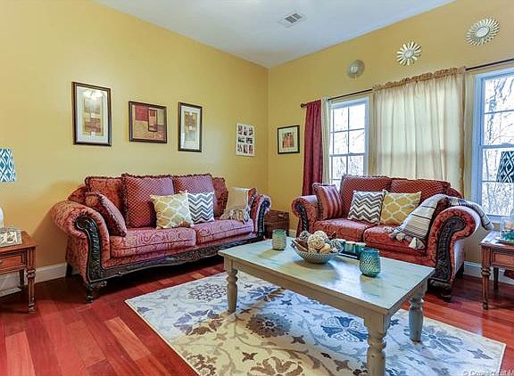 When you walk thru the door you will feel very welcome in this condo. Tastefully decorated it will be easy for you to incorporate your sense of style and color with the base that is provided. Beautiful hardwood in the kitchen and the sunken living room is done in a beautiful cherry wood. Half bath on the first floor and full bath on the second floor with two sinks. This is easily a 4 bedroom condo however one bedroom is being utilized as a walk in closet. There is also finished space in the lower level with sliders that walk out. This unit boasts all new thermal windows, new HW heater, remodeled kitchen and a new and updated electrical panel. Move in and call this HOME!