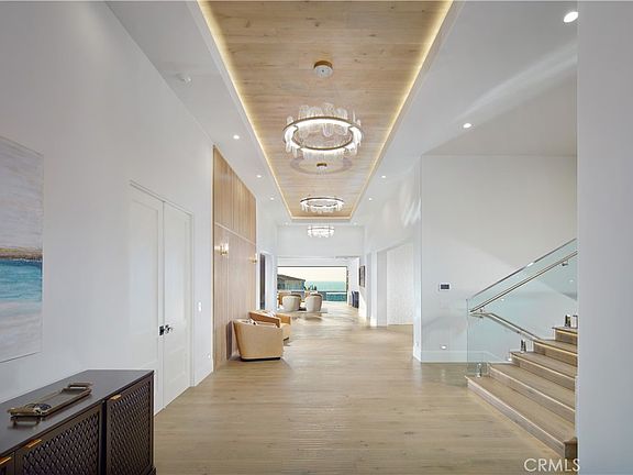 Breathtaking Ocean views, dramatic sunsets, and white water crashing over the iconic Monarch Point, this stunning custom home is offered fully furnished and has recently been transformed into a virtually brand-new masterpiece on the 2nd row of Dana Point’s beachfront guard-gated Ritz Cove. Stripped down to the studs and reimagined during an extensive remodel by renowned architect Corey R. Solum of Think Architecture, four luxurious bedrooms and three-and-one-half baths are revealed in approximately 4,745 SF of light-filled interiors which feature durable white oak hardwood flooring. A custom 18’ Hubard iron glass pivot door opens into an impressive foyer that sets the scene for sophisticated contemporary living. Bespoke finishes and materials capture the eye upon arrival and enrich an open main level that hosts a formal living room or game room with coffered ceiling, a large dining room, and a great room with custom built-ins, brick masonry fireplace, 7.1 surround sound, and a cocktail bar with under-counter Sub-Zero refrigerator. The great room continues seamlessly to a magnificent new kitchen with massive eat-in island, open shelving, high-end custom cabinetry, a vaulted white oak ceiling, oversized butler’s pantry, Wolf, Cove, and Sub-Zero appliances, Scotsman pebble ice maker, and rare leathered Taj Mahal quartzite countertops. This level of the residence opens via 8' glass La Cantina accordion and pocket doors to an all-new backyard with a built-in firepit, resort pool, and elevated infinity edge spa controlled by the PentAir app. Glass railings and LED lighting enrich a staircase that leads upstairs, where three secondary bedrooms include two that open to a balcony. A fireplace-warmed primary suite boasts a boutique-style walk-in closet showcasing a stacked washer and dryer set, and a bath with a custom freestanding tub, separate multi-head commercial-grade steam shower, TOTO Neorest smart toilet, separate porcelain bidet, and limestone-topped individual vanities. Additional highlights include a separate laundry room on the lower level with new LG washer and dryer, all new PEX piping, Smart Home Lutron lighting for complete app-based control of every fixture, and brand-new HVAC systems, and large two-car garage with epoxy flooring. Situated between The Ritz-Carlton and Waldorf Astoria’s oceanfront links golf course, Ritz Cove’s premier location is steps to Salt Creek Beach, and moments from shopping, fine dining, Laguna Beach, and Dana Point Harbor.
