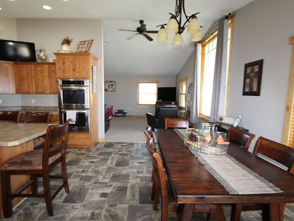 This 2012 custom built home has 2228 sq ft of main floor living on 50 acres. Warm alder wood trim, paneled doors & cabinetry creates an inviting main level that includes: a living room & kitchen w/ vaulted ceiling & large windows to enjoy wide open views. A large master suite w/ sitting area has a walk-in closet & ¾ bath w/ dual vanities. There are 2 additional bedrooms, a full bath, laundry/mud room w/ an additional ½ bath. The 1792 sq ft basement has 2 bedrooms, a full bath & a spacious family room that is ready for flooring & a finished ceiling. Home has geo thermal heating & cooling w/ an attached 32X40 heated, 3 stall garage. A Trex deck steps onto a covered patio & is located on the east & south side of home for evening shade. Additionally, there is a 30X40 finished heated shop w/heated floors & shop drain, LED shop lights, ½ bath w/laundry hook ups & a 16X10 insulated overhead door w/opener. Another 40X64 steel building has (2) 14X14 insulated doors w/openers & an 11X12 & 4X6 sliding doors. Alongside this Building is a carport & tack shed. There are outside-corrals w/ 3 livestock waterers & 2 hydrants completely fenced into 2 pastures. Listing agent is related to seller.