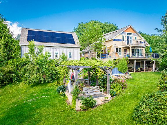 An over-sized, post and beam, 2-car garage has a spacious second floor for future living or guest space. The home is equipped with solar panels that cover a significant portion of the electrical costs, and heat pumps are a great adjunct to the central heating system and ensure year-round comfort.