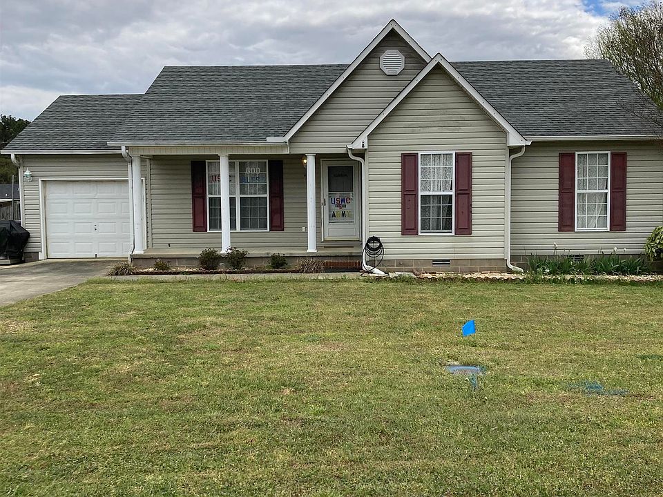 Nice neighborhood. Three bedroom, Two bath house, open floor plan. Vaulted ceiling in family room. Large back yard with privacy fence. Two storage buildings, one 20x10 by drive and a 10x12 in fenced backyard.
