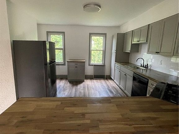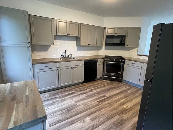 If you are looking for a move-in ready home with an inviting porch and off-street parking in the Valley Camp neighborhood of New Kensington, this home located at 44 Robinson is it! Cute vinyl sided cottage style home has been completely remodeled. As you enter the front door into the living room, you will notice the open floor plan with all new vinyl flooring on the first floor. The spacious kitchen with the all new cabinetry and butcher block countertop is one of many items that catch your eye. The kitchen has a subway tile back splash and is large enough for a small table for meals or simply utilize the convenient breakfast bar that is situated between kitchen and living room. As you move on to the second floor, you will be greeted with new wall to wall carpeting and fresh paint throughout. The ample size "Jack & Jill" bathroom consists of a shower & tub is easily accessible. There is also an additional full bath in basement. The entire home has new lighting throughout.