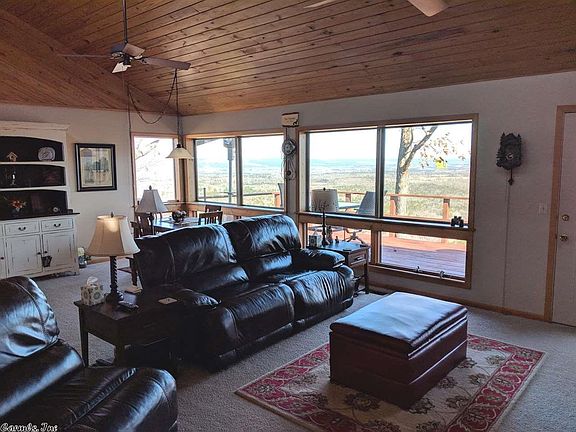 Spectacular panoramic views of the Little Red River and surrounding area from this secluded home in the woods. Sky lights and lots of windows let in natural light and the large deck was made for enjoying the view. Beautiful wood ceiling in living room, sun room off the master, wood burning stove & nice kitchen with pantry make this the perfect get away or forever home. Come relax & enjoy the views!!