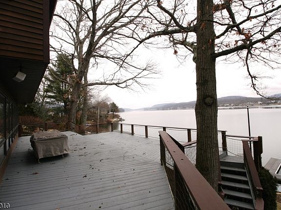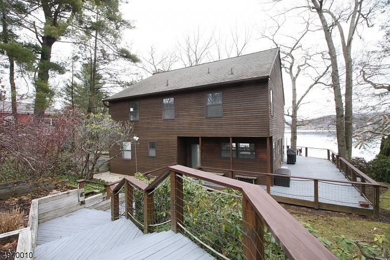 Large contemporary lakefront home with some of the best views Greenwood Lake has to offer. This home is a special find as it offers an idyllic setting with detached garage and parking for 10 cars, entertainment size deck with endless views and 4 boat docks all on one of the most desirable streets bordering Greenwood Lake. At 2700 sq ft plus a finished walkout basement this home is ready for entertainment. Wall to wall windows in the main living area lend to some of the most spectacular views of the lake.