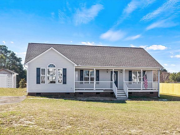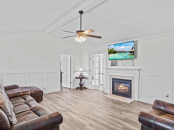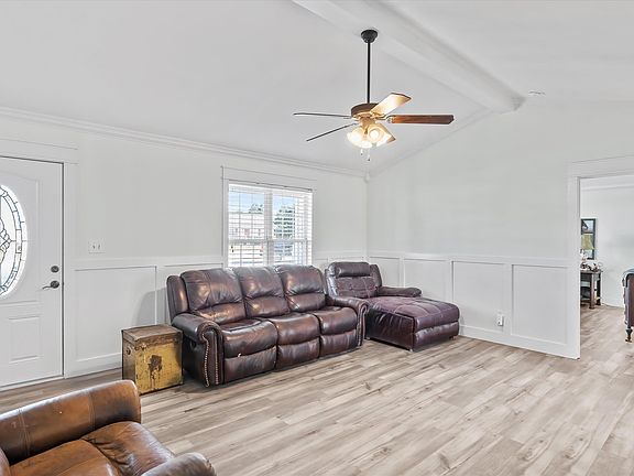Move in Ready-newly updated One story home with split bedroom floor plan on large flat lot*Wow-new luxurious LVP flooring throughout*new designer paint including walls & ceilings*new detailed crown moldings, wainscoting & beautiful baseboard moldings*Huge family room w/ cathedral ceiling*Spacious Owners bedroom suite w/ cathedral ceiling-private bathroom & huge walk-in closet*Large open Kitchen w/ lots of cabinet storage & new pantry*Large secondary bedrooms-all w/ new LVP floors & new paint*updated bathrooms w/ new designer tile floors*new ceiling fans*New Roof 2 years new*Large front porch to enjoy as well as spacious rear deck*Enjoy gorgeous Sunset views & Sun rises*Bonus storage buildings*Room for garden, fire pit and extra parking for boat or RV*No restrictions!