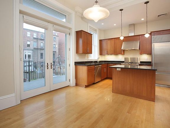 Spacious parlor and second floor duplex. Some attributes include grand ceiling height, fireplace with beautiful moldings, hardwood floors, a dining area with a private deck attached off the back, stainless steel appliances throughout the kitchen as well as gas cooking, a full set of stairs leading to the second floor, two generous bedrooms each with full baths, in unit laundry, air conditioned, one tandem parking space included. Rutland Square is located in one of the South End's most desirable neighborhoods known for its picturesque streets.