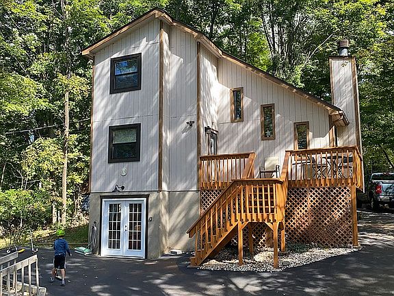 Sitting tall and proud, this 3 bed 2 bath quaint contemporary is located in the Hideout, a top rated community nestled in the Poconos Lakes Region. There are 3 finished levels, each with a bedroom and living/ sitting area for privacy. Low maintenance landscaping means more time enjoying life on your front or back deck. Just a short walk to the Hideout's North Beach! Other amenities in this fabulous 4 season recreational community include motor boating, golf, indoor and outdoor tennis, even skiing and skating! New roof installed in 2021, and new windows in 2022.