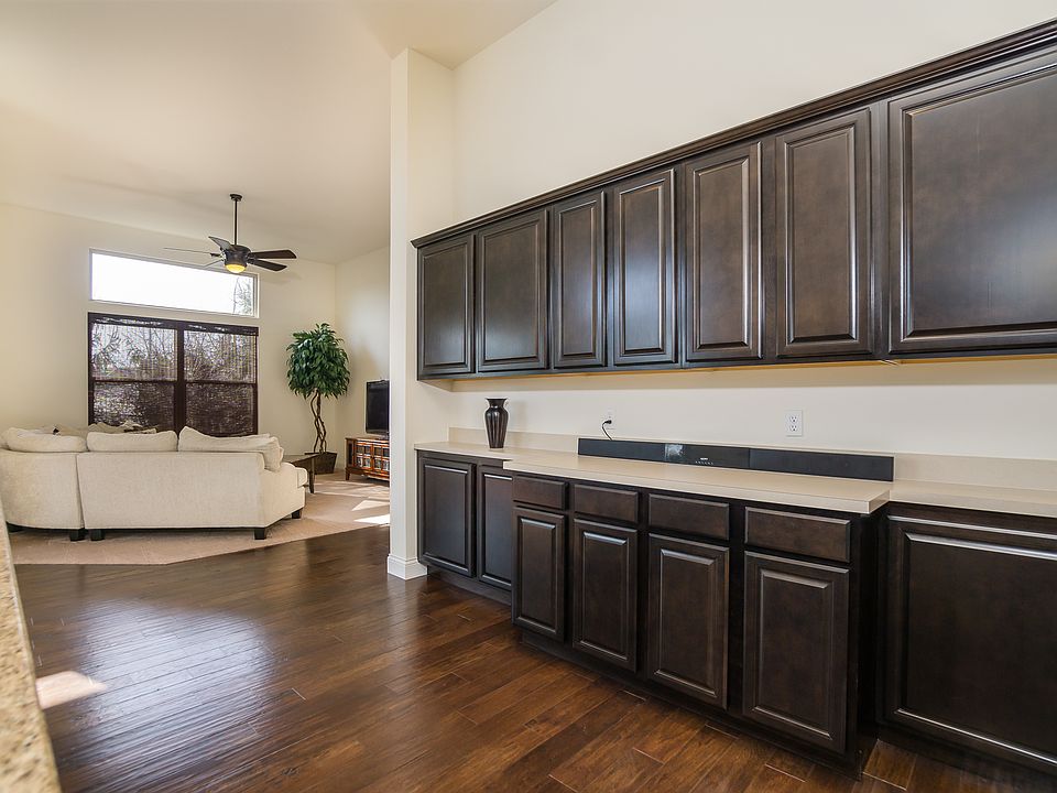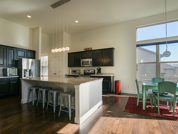 - Kitchen: Breakfast Bar, Center Island, Custom Cabinetry, SolidSurfaceCounter, Eat-In Kitchen, Pantry
