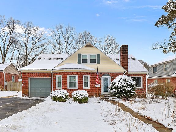 Beautiful expanded brick cape in well-established southeast neighborhood! Gas fireplace in large living room, beautiful hardwood floors throughout, formal dining room, eat-in kitchen with walk in pantry, quartz countertops & stainless appliances. Mud room off of kitchen leads to attached one car garage and to large sunroom overlooking deck and large fenced in yard. First floor bathroom w/beautiful glass shower, porcelain tile. Playroom that could be 1st floor bedroom, wide staircase leading to second floor landing, large primary bedroom with walk in closet, full bathroom, large walk-in hall closet and 2 additional large bedrooms. Plenty of storage in this fabulous home! Central Air! Many updates. New furnace in 2022, new gutters, and much more.