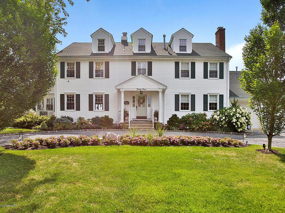 FABULOUS WATERFRONT COLONIAL! Beautifully set on picturesque grounds complete w/ dock, in-ground pool & breathtaking views from nearly every room! Completely transformed & like new, yet timeless & sophisticated w/ hardwood flooring, custom millwork & sun drenched rooms. Gourmet Kitchen w/ radiant heat, granite counters, & oversized windows. Formal DR w/ hardwood flooring, Study w/ handsome FP, lovely sun room. Luxurious Master w/private balcony, fireplace, en-suite bath w/ his & her sinks, glass enclosed shower & separate tub. Three additional bedrooms w/ great closet space, spacious 3rd floor bonus room, 2 car over-sized garage w/ guest suite above the garage w/ kitchen. Covered porch w/hot tub leads to manicured grounds w/ pool house, dock w/electric lift, boat house & much more.