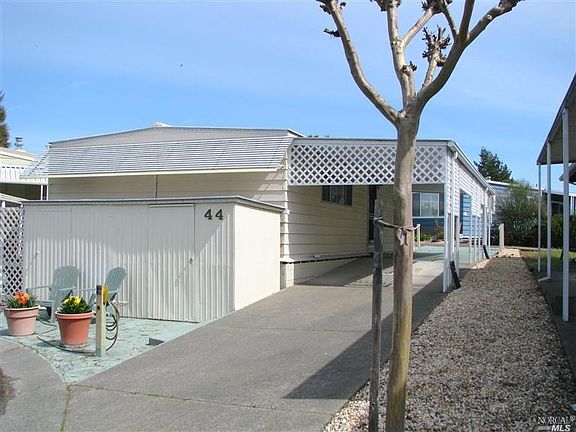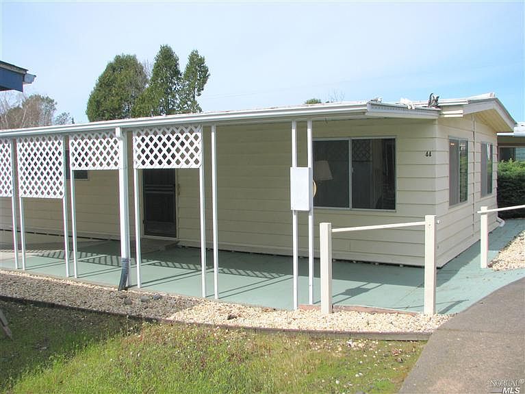 This is a 2 bedroom, 1.0 bathroom, mobile / manufactured home. This home is located at 44 Sequoia Cir, Santa Rosa, CA 95401.
