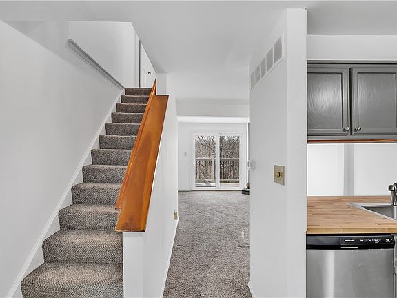 Welcome home! 44 Shadow is ready & waiting just for you! Under your covered front porch through your easy walk-in front door into the first floor. Kitchen has painted cabinets accented by brand new backsplash and stainless appliances. New Butcher Block counter top with overhanging side perfect for bar stools. Spacious living room features your wood burning fireplace and slider to rear balcony just right for relaxing! Past your recently painted two toned half bath leading upstairs, find 2 nice-sized bedrooms and full bath with tub. Master bed has large closet and separate, in room, vanity w/ access to full bath. Down stairs you have your laundry area, garage with insulated garage door and opener. Super convenient location just a skip and jump to Rt 51 and Library Rd “T” stations, only 10 minutes to Mount Lebanon, under 15 minutes into the South Side and Downtown Pittsburgh!