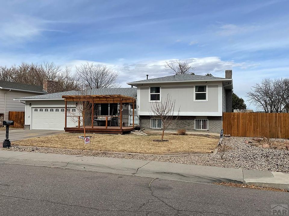 Move right into this remodeled (2019) Regency Tri-Level! The exterior just received a fresh coat of paint (March 2023). Step inside to the spacious layout filled with an abundance of natural light and waterproof laminate flooring throughout the main level. The main and lower levels were completely remodeled in 2019, with a gas stove and range hood installed as well as a new roof, dishwasher, microwave, washer and dryer. Kitchen features granite countertops, deep stainless steel sink, and custom pull-out shelving.The family room has a wood burning fireplace and newly tiled flooring. This 4 bedroom, 3 bath is perfect for any family as there is something for everyone! In the backyard is a storage shed, raised garden bed, greenhouse, paver patio with seasonal sun shade, raised playhouse for kids and RV parking. Hard wired security system with DVR to stay (no monthly fee to pay). Additional features include: New windows, front deck made with composite decking, custom bookshelves in the 4th bedroom, recessed can lighting, deep jetted tub in Master bath, custom locking dog door and wood gate for stairs. In the garage; a work bench, upper cabinets and built-in shelves and an additional work room. Furnace and the air conditioner have been updated. The established landscaping boasts fruit producing apple trees, rose bushes, columbine, lavender, tulips, lilies and more! Minutes away from parks, golf course, Close to shopping areas, restaurants.