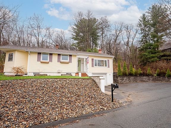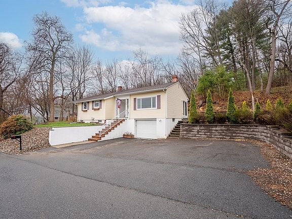 Your New Home Awaits! This Charming Vinyl Sided three-bedroom Ranch with 1 car garage is located on a non through street provides everything you could possibly want as a first-time homebuyer or looking to downsize with much desired Gas Heat & Central Air Conditioning! All you have to do is move right in! You will be in awe of the open concept living room with gorgeous decorative fireplace is all open to the dining room both areas are flooded with natural light & have wood-style laminate flooring with exterior access to your beautiful stone patio and landscaped yard is perfect for outdoor entertaining! The cheerful kitchen boasts many cabinets, newer stainless appliances, tiled floor & a dining bar for casual meals. Large Primary Bedroom w/ensuite full bath, double closets along with two more good size bedrooms with roomy closets. There's also an additional updated Full Bath with shower/tub. Partially finished basement makes a great rec-room w/laundry room & extra storage. This is it!