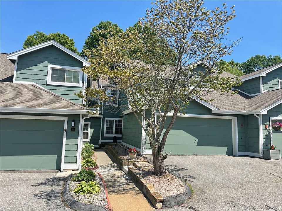 If care free living is what you are looking for - this is it. Come and enjoy this lovingly maintained townhouse in desirable Spyglass Hill that needs no more than your personal changes. Many updates in this 2 bedroom, 2 1/2 bath home with open floor plan. Living room has vaulted ceiling, fireplace and sliders out to a private covered patio with wood view. Remodeled kitchen has granite counters and loads of cabinets with view of the dining and living room - perfect for entertaining. Open staircase leads you upstairs to the 2 bedrooms -each with a private bath. 2 car garage. Very popular condo community - come meet your new neighbors at the pool. Don't miss your opportunity to own this beautiful home in quiet location. Close to shopping, restaurants, Navy base, General Dynamics, Pfizer, Mystic area of Groton. Come take a look!