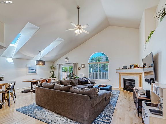- Features: Ceiling Fan, Fireplace Insert, Skylight, Vaulted Ceiling, Wood Floors