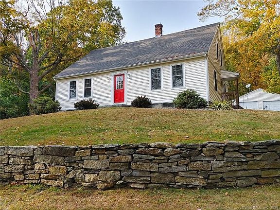 This circa 1779 Cape home maintains its original charm yet was completely renovated to modern standards due to a 2004 fire. Upon entering this home, a spacious maple kitchen greets you with a large counter Island and gleaming hardwood floors which continue throughout the kitchen, dining and living rooms. The kitchen is open to an expansive dining room which may be divided into a dining family room or utilized as a great space for large social gatherings. As you continue on the first floor, you will be delighted to see a large formal living room, 2 bedrooms and a full bath with laundry. The second floor of the home consists of two more spacious bedrooms and an additional full bath. The two levels of bedrooms and bathrooms allow for family cohesiveness yet guarantee a sense of privacy. The outdoor patio is a wonderful relaxation space to enjoy the seasons. The two car garage can shelter your cars or your belongings. This property contains 16.39 acres consisting of the 3.1 acres allocated to the house and 2 additional building lots: Lot #1 is 10.87 acres and Lot #2 is 2.42 acres. The home and additional acreage are being sold as a package. The options for this home and acreage are many as is seen in its long Coventry history as a farm, a tavern and a blacksmith shop. Enjoy a leisure trail walk on the owner maintained walking trail around the property.