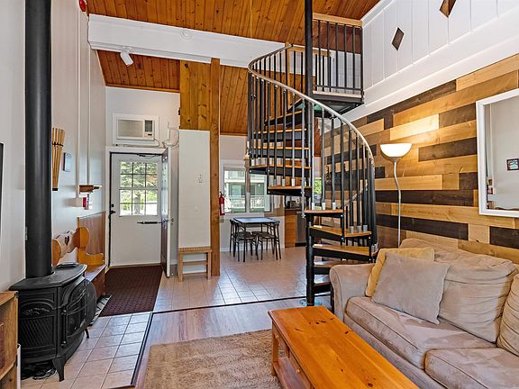 Located in the heart of Smuggler’s Notch Resort, you will find this well-oriented one-bedroom townhouse (plus loft) can accommodate sleep for up to six people! Beautifully updated with an enhanced wood paneled wall, views of ski trails, a short walk to the ski lifts, an expansive lawn to enjoy during summer months, and a barbecue area right off the back deck. Features a private ski locker, cathedral ceiling in the living room, A/C, ceiling fan, and a Vermont Casting gas stove. Get your hands on this four season vacation home with easy access to the slopes, village activities, low maintenance requirements, and the ability to join Smugglers’ Notch Rental Program!