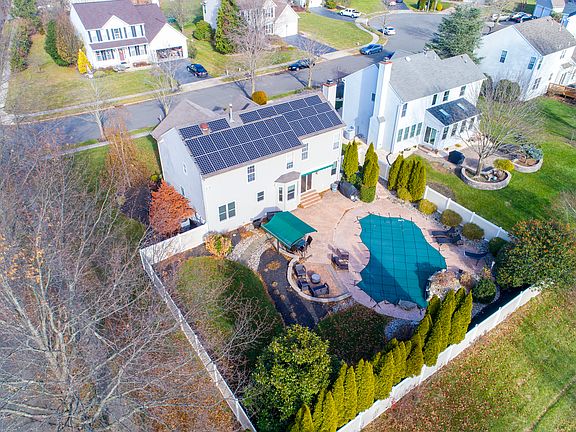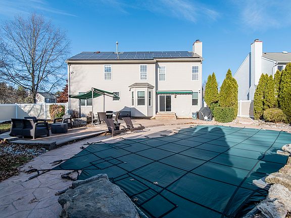 COMPLETELY RENOVATED PRISTINE HOME WITH NEW KITCHEN, UPGRADED MASTER BATH, NEWLY FINISHED BASEMENT & NEW WOOD FLOORS THROUGHOUT! Enjoy summer fun in the outdoor oasis with heated in-ground pool & waterfall, stamped concrete patio, privacy PVC fence and 2 Sun Setter awnings for shade. From inside to outside, this home is totally move-in ready and yours to enjoy! Freshly painted throughout with neutral colors that today's buyers will appreciate. Newer furnace and central AC (4 years old) for your peace of mind. Great curb appeal with manicured landscaping and a 2 story arch at the front door to welcoming you! A dramatic two story foyer showcases the turned staircase, palladian window and large plant/decor shelf. Living and dining rooms feature new hardwood floors and crown molding. The newly updated chef's delight kitchen will provide many memory making times. Kitchen features new white cabinets, decorative stone and glass backsplash, new stainless steel appliances, double sinks, desk and recessed lights that seamlessly flows into the light filled family room. Enjoy your relaxing family room with wood burning fireplace, TV bracket and speakers. An updated powder room with decorative vanity/sink and a convenient first floor laundry room. The second floor offers a master suite with newly upgraded spa-like bath. The spacious master bedroom has a volume ceiling , large walk-in closet with custom organizers and a TV mount. Escape the hectic pace and enjoy this gorgeous newly upgraded bath: seamless glass shower with gorgeous decorative tile, soaking tub with matching tile, vanity with granite counter and a private commode. Three additional bedrooms and a bath complete the second floor. All bedrooms have ceiling fans/lights and new wood flooring. The newly finished basement with will provide countless hours of enjoyment 2 finished open areas, storage closet, TV mount bracket and commercial dehumidifier. Newer Andersen windows on the back of the home. Solar panels offset your electric bill and essentially fund the pool heater/waterfall for the season. Close to public transportation, shopping, restaurants & parks. Convenient for commuters with train station 15 minutes away or bus park and ride 10 minutes away.